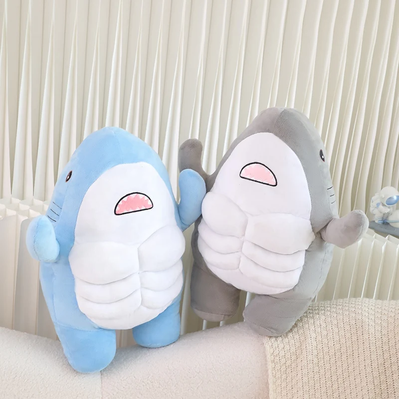 35cm Muscle Shark Plush Toys Stuffed Ocean Whale Fish Stuffed Animals Soft Plushie Dolls Kids Birthday Gifts Valentine's Day